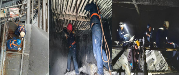 面對這一挑戰,西昌藍鼎生產(chǎn)部迅速組織檢修班展開(kāi)研究,尋求解決方案。檢修班長(cháng)黃曉明憑借豐富的現場(chǎng)經(jīng)驗,創(chuàng )新性地提出一項建議:在現有橋架上方加一層耐腐蝕的玻璃鋼蓋板。這一方案相較于整體更換玻璃鋼橋架,不僅施工難度低、檢修費用少,而且能夠更好地適應GGH下部特殊工況環(huán)境的需求。
